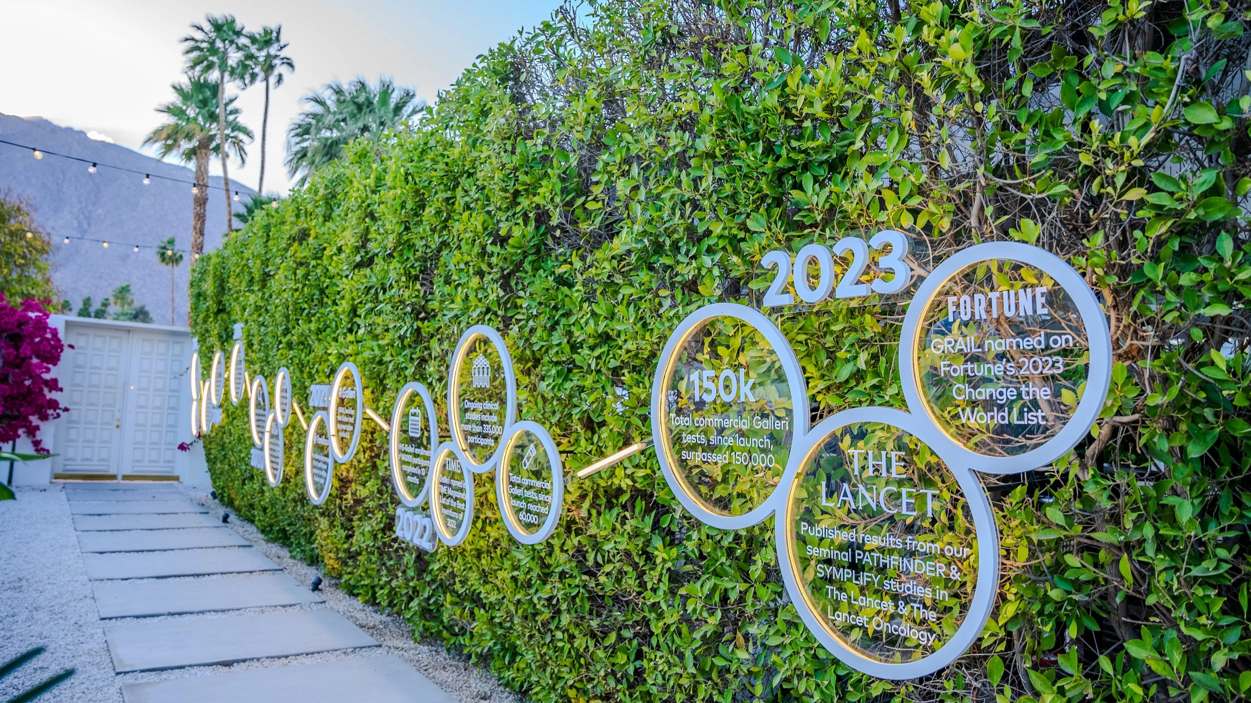 GRAIL’s product Galleri®, a first-of-its-kind multi-cancer early detection test, sponsors a golf tournament every year called the Galleri Classic in Palm Springs, California. My design touchpoints included a heart-healthy dining experience curated by celebrity chef Cat Cora and the private Galleri viewing box on tournament grounds.