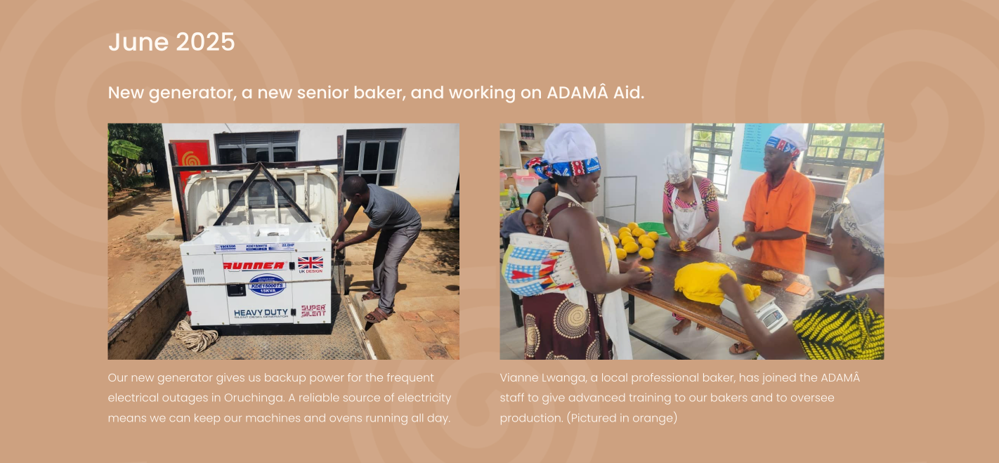 Our color palette of warm browns and reds evokes a comforting and welcoming presence across ADAMÂ’s website, product labels, and even the branded motorcycle and tuk tuk. It has been a true honor to help spread the word about this organization and its mission through design.